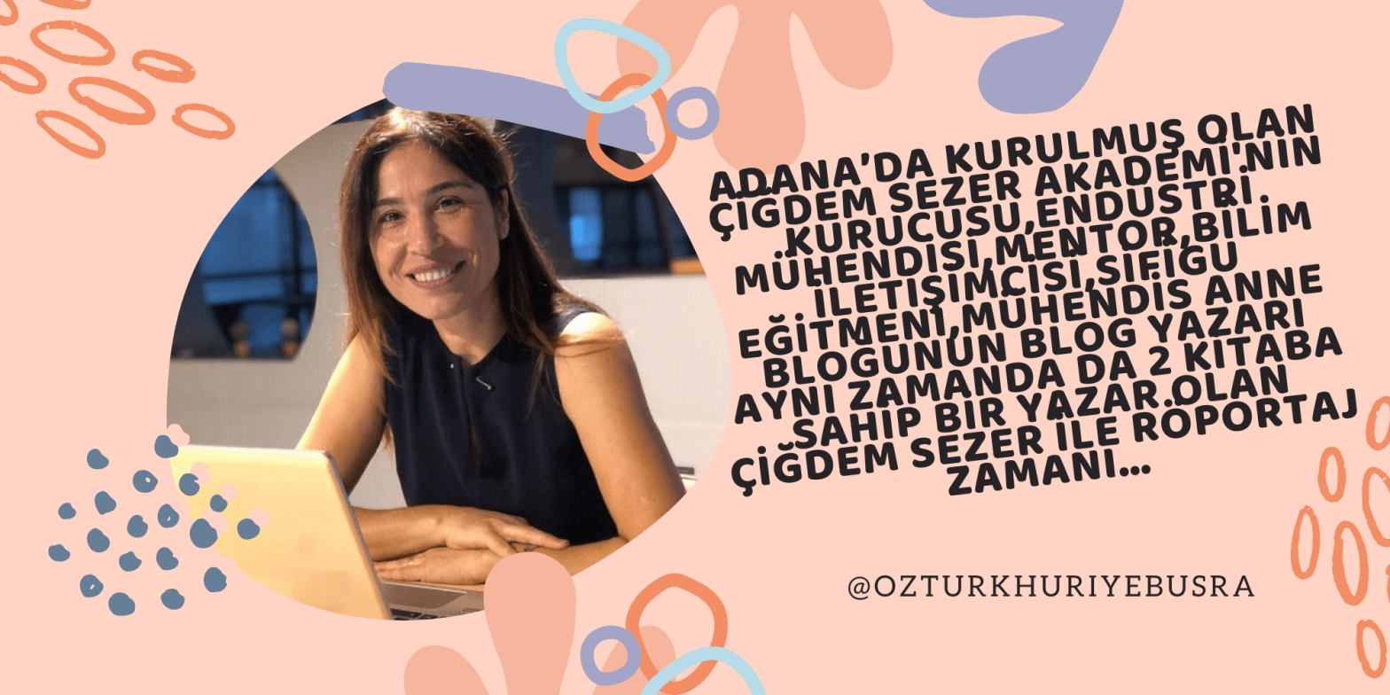 ADANA’DA KURULMUŞ OLAN ÇİĞDEM SEZER AKADEMİ’NİN KURUCUSU,ENDÜSTRİ MÜHENDİSİ,MENTOR,BİLİM İLETİŞİMCİSİ,SİFİGU EĞİTMENİ,MÜHENDİS ANNE BLOĞUNUN BLOG YAZARI AYNI ZAMANDA DA 2 KİTABA SAHİP BİR YAZAR OLAN ÇİĞDEM SEZER İLE RÖPORTAJ ZAMANI…